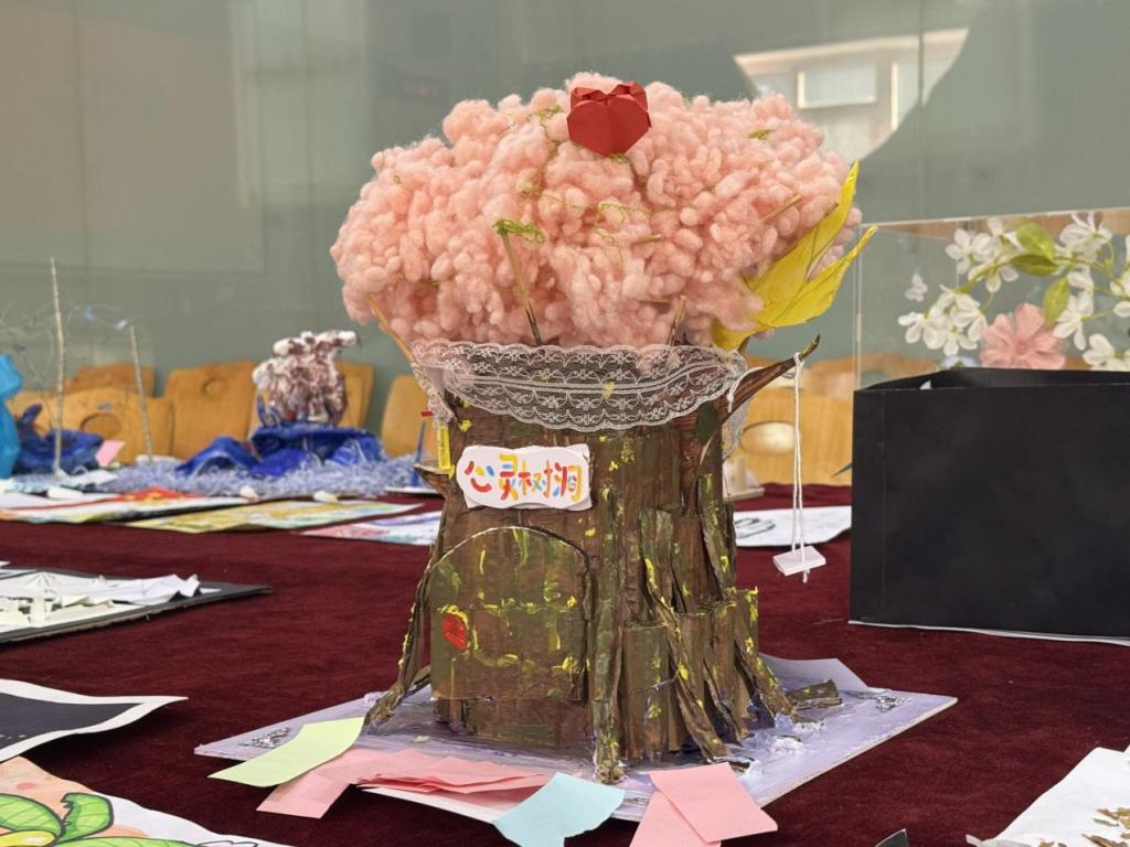 大赛现场设置作品展示区,涵盖立体构成、手作艺术、黏土捏塑、落叶拼贴等多种形式。创作者借助艺术语言实现抽象情绪的具象表达,呈现对心灵与情绪的深入思考。志愿者现场讲解作品背后的心理故事,评审从创意、内涵、专业三个维度进行点评,阐释艺术疗愈逻辑,为参与者搭建了交流与启发的平台。